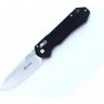 Многих покупателей привлекает тот факт, что ручка модели Ganzo G7452 WD2 сделана из натурального дерева. Она гладкая по фактуре, окрашена в черный цвет и имеет удобную форму с выемкой под указательный палец. Крепятся накладки с помощью трех винтов меньшего размера и одного более крупного, который выполняет роль оси для клинка. Производители также предусмотрели наличие клипсы для фиксации ножа на ремне и отверстия для ремешка на запястье.